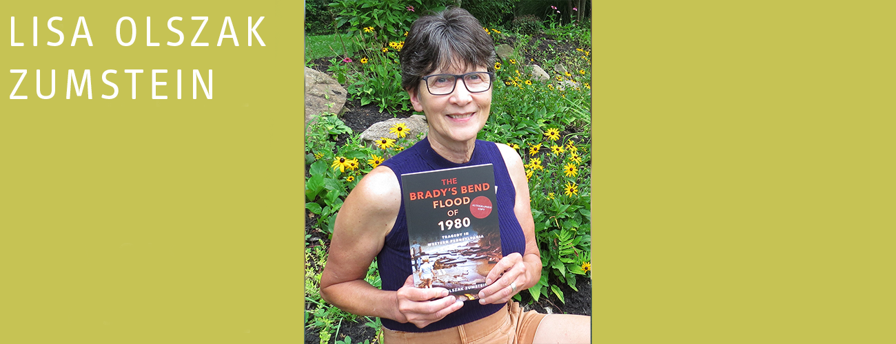 Retiring after more than 30 years as a successful small business owner, Lisa Olszak Zumstein’s passion for local history and writing found time to bloom. Growing up with eight siblings in the tightly knit rural Appalachian community of Brady’s Bend, Pennsylvania, hard work and resilience are ingrained in Lisa’s life. Drawing on her career as an interviewer, researcher, analyst, and compelling writer, she uncovers the broader significance of a 1980 catastrophic storm and flood in her hometown of Brady’s Bend. With a talent for turning complicated technical information into clear, relatable terms, she captures the emotional and long-term effects of the catastrophic flood on everyday life.